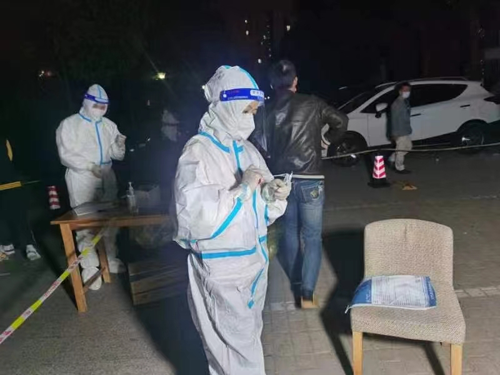 “事发突然,有些孩子睡梦中被叫醒不太适应,情绪有点崩溃。但是家长们都在耐心地安慰孩子,一遍遍告诉孩子医务人员和社区工作者都很辛苦。”居民们用自己的方式支持配合工作,社区人员井井有条地维持现场秩序,让齐甜甜感到心中一阵暖流。只是到了后半夜,气温下降,又是一重考验。“我下来时,知道要穿防护服,所以特地穿了一件薄卫衣,前半夜没什么感觉,只知道脖子后面全是汗。但是后半夜的时候,即使防护服不透风,我还是感觉到周身都是冰冷的,寒气一直在往上冒。”