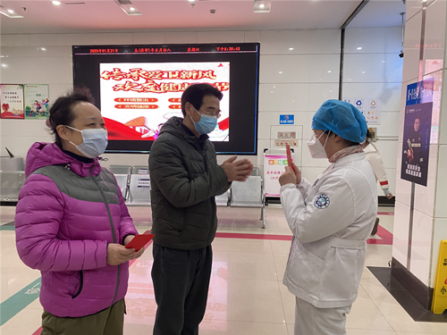 高勇副院长一行来到门诊部的预检分诊台、门诊药房、门诊检验科、动物咬伤科、收费处等相关科室,详细了解病人情况、急诊就诊流程,向值守的医务人员送上节日的问候,感谢他们为全院职工和广大病友守好第一道防线。
