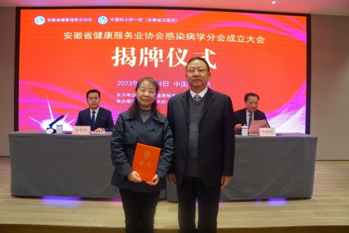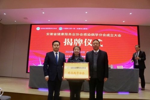 协会会长杜昌智、协会副会长兼秘书长余华伍共同为感染病学分会揭牌和授牌