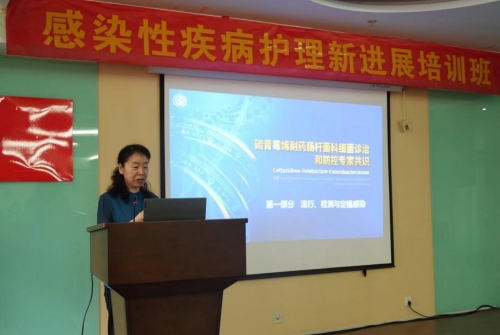开场,由中科大附一院(安徽省立医院)感染病科徐静主任致辞,她充分肯定了护理队伍为感染病专科发展所付出的努力,她表示,这是市内感染性疾病护理领域的一次学术盛会,希望参与学习的人员能够深入交流,开阔视野、学以致用。紧接着她从“流行、监测与定植感染”、“治疗原则与药物”和“各系统感染、诊治与防控”三个方面详尽地解读了碳青霉烯耐药肠杆菌科细菌诊治和防控专家共识。