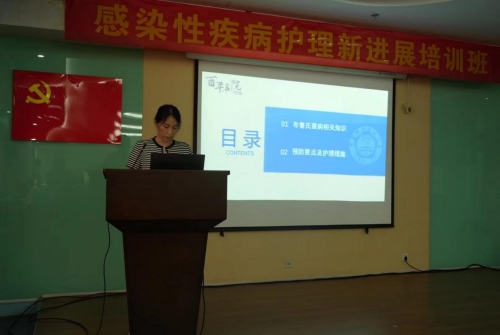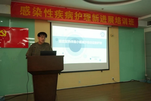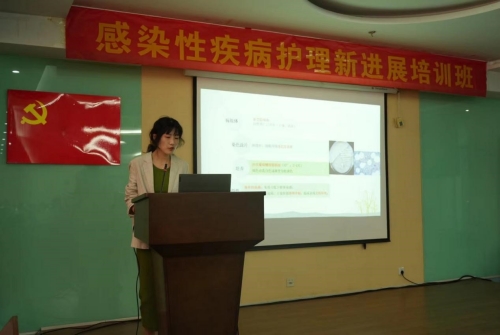 随后我院五病区住院医师张蕊、ICU李扬护士长、五病区苏钰护士长分别围绕《隐球菌性脑膜炎的诊治》、《发热伴血小板减少综合征的护理》、《布鲁氏菌病的预防和护理新进展》为题进行主旨讲座,详细地讲解了这三种感染性疾病的相关知识,并与在座的护理同仁们共同探讨了感染性疾病护理管理的新思路、新方法,强调在临床工作中要理论与实践相结合,秉持创新、拓展的宗旨,以高度责任心对待临床护理工作,把医疗安全和患者安全放在首位。