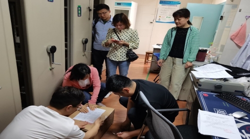 张良明书记首先对市质控中心专家组成员表示热烈欢迎,并介绍了我院的整体概况,随后药剂科卢今主任就科室基本情况、合理用药评估数据上报工作作了简要介绍。检查组分别就我院《2023年安徽省医疗机构合理用药评估指标》相关内容、麻精药品管理、抗菌药物规范使用情况、处方审核等工作进行督导核查,同时现场抽取了七大类药品使用的病历送至市质控中心进行集中处方点评。