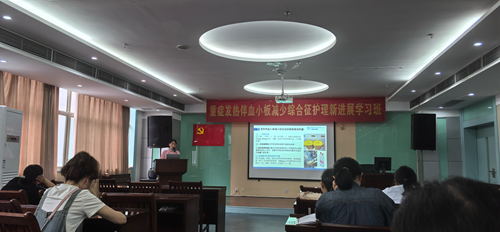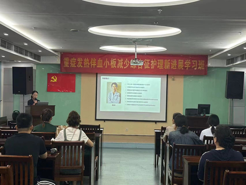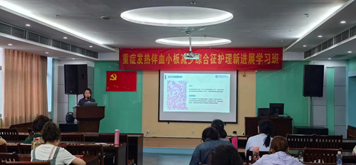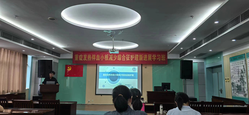 自2010年以来,发热伴血小板减少综合征(SFTS)发病率逐年增高。随着对SFTS诊疗能力的提高,我国SFTS整体病死率下降,但重症患者病死率仍较高,合并中枢神经系统受累的SFTS患者病死率高达44.7%。作为省、市发热伴血小板减少综合征危重症患者定点救治单位,我院ICU是收治重症SFTS患者的主要科室。为科学规范落实发热伴血小板减少综合征诊疗、防控和护理工作,提高专业护理人员的知识储备,ICU于7月12日在门诊部成功举办重症发热伴血小板减少综合征护理新进展学习班。