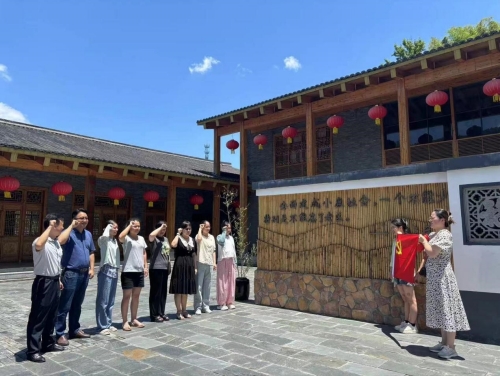 时近晌午,骄阳四射!随后,门诊党支部又继续赶往大湾村红色教育基地,在村民陈泽申家小院里,回顾习近平总书记当年亲临大湾村的动人场景,切身体会大湾村打赢脱贫攻坚战,过上幸福美好生活的生动案例。在“追梦路上的大湾村”学习教育中心,观看了习近平总书记2016年4月专程到大湾村考察的专题片,参观了“追梦路上的大湾村”图片展,了解大湾村的新变化、新发展。最后,全体党员在红色教育基地重温了入党誓词,以铿锵有力的宣誓声表达了对党的无限忠诚和为共产主义事业奋斗终身的坚定决心!