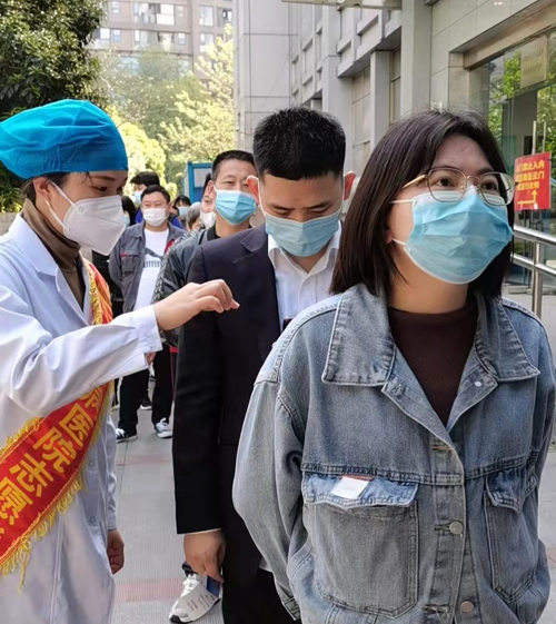志愿服务开展以来,志愿者们在完成好本职工作的同时,配合门诊导诊在门诊出入口、核酸检测点规范开展志愿服务。在就诊高峰,志愿者耐心劝导来院人员正确佩戴口罩、保持安全距离,并按照防疫要求对患者的行程码、健康码进行查验,避免人员聚集,引导患者有序到就诊科室就诊,维持就诊秩序,营造安全良好的医疗环境,保障医院疫情防控和患者正常就诊两不误。