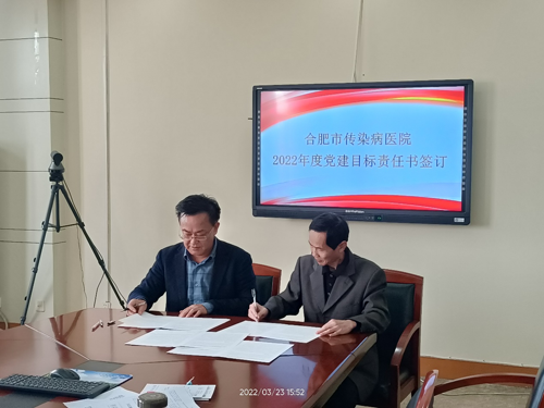 3月23日,在住院部行政楼3楼会议室,院长张良明与各党支部书记签订了《合肥市传染病医院(安徽省立医院感染病院)2022年度党建目标责任书》,明确了党支部本年度党建工作目标任务,为进一步强化基层党组织建设提供了有力保障。