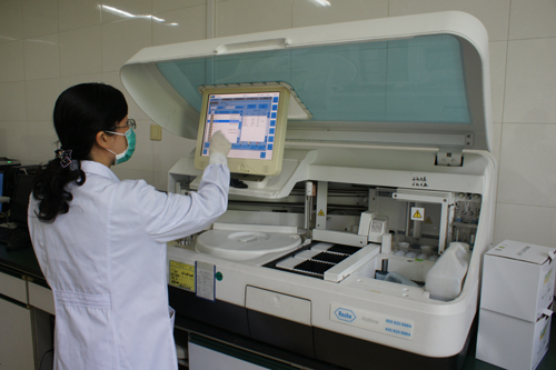日立7180型全自动生化分析仪检验项目适用范围广,主要包括:肝功能、肾功能、血糖、血脂、心肌酶、淀粉酶、胆碱脂酶,载脂蛋白等。生化比色项目800项次/小时,具有精确、快速的分析能力。