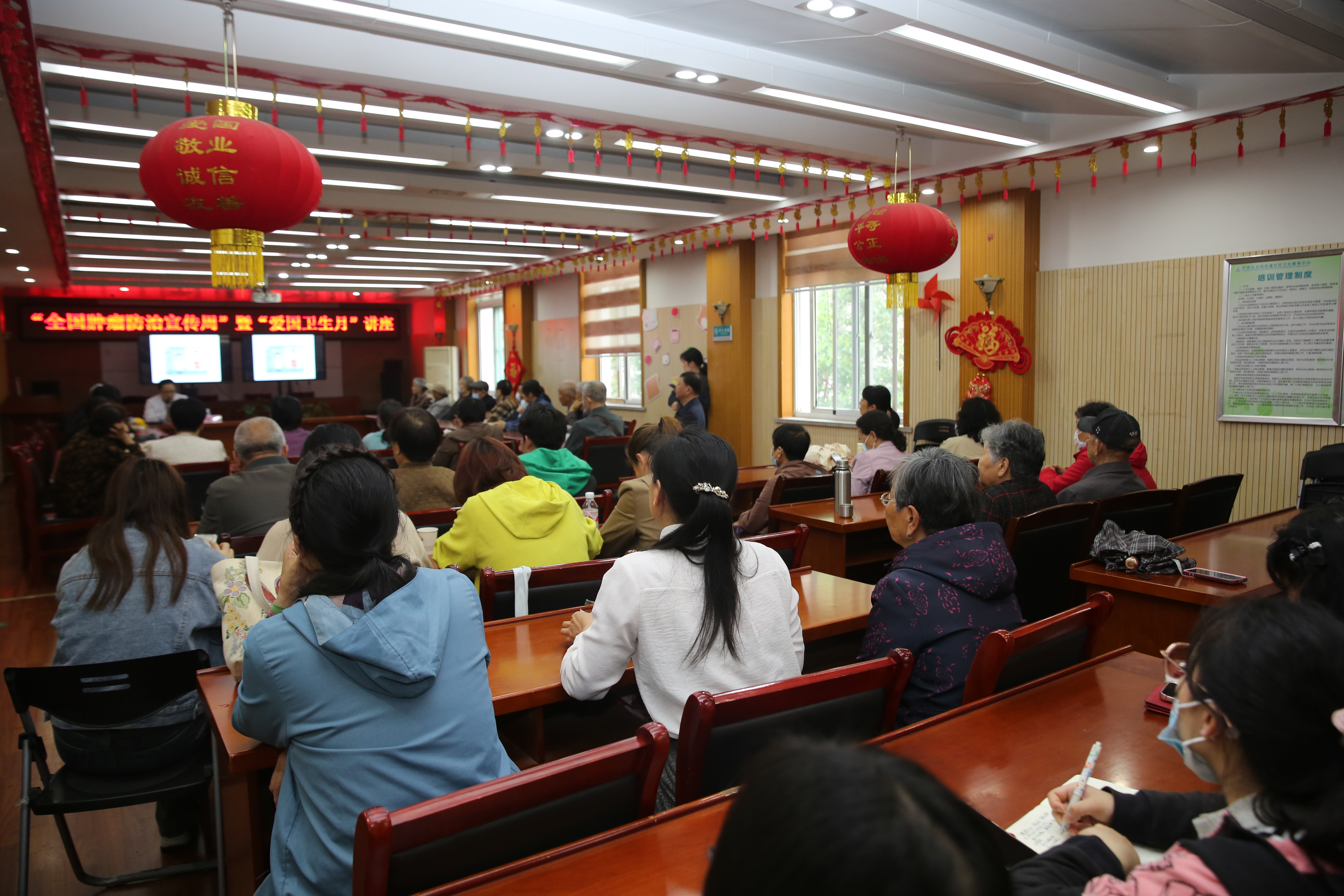 4月17日下午,我院专家团队到庐阳区双岗社区卫生服务中心,举办肿瘤防治宣传周科普进社区活动。科普进社区活动在双岗社区会议室举行,数十位居民前来听课。