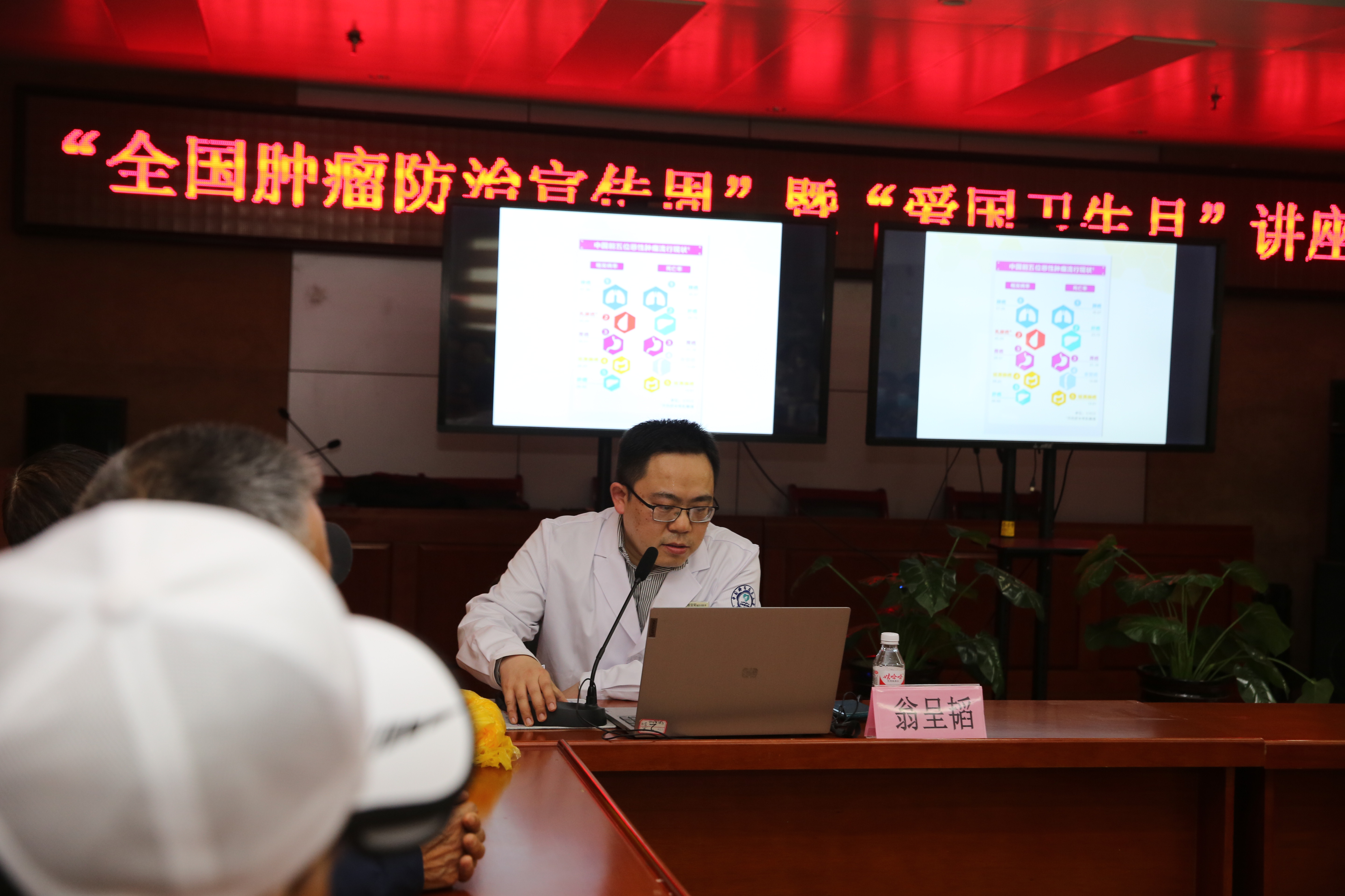 我院肿瘤内二科副主任医师翁呈韬做了题为《消化道肿瘤的预防与治疗》的科普讲座。社区的居民听众们听得津津有味,聚精会神,大家还在本子上认真做着听课笔记。专家答疑环节,翁呈韬耐心地解答每一位听众的问题,并告诉他们如何科学地预防消化道肿瘤,叮嘱他们,要定期做消化道健康筛查,早检查早预防,将消化道疾病扼杀在摇篮里。