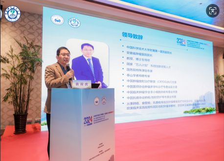 金秋送爽,相聚庐州,2024 年 11 月 1 日至2日,由安徽省抗癌协会主办,中国科学技术大学附属第一医院西区(安徽省肿瘤医院)胸部肿瘤外科承办的第八届安徽省胸部肿瘤外科学习班,暨2024年安徽省胸部肿瘤外科论坛,暨第三届全国食管癌高发带管理论坛,在合肥顺利召开。中国科学技术大学附属第一医院党委委员、副院长、安徽省肿瘤医院院长袁双虎教授到会并发表热情洋溢的开幕致辞,对与会嘉宾的到来表示热烈欢迎,并强调了胸部肿瘤外科领域不断创新和交流合作的重要性,也对学科建设提出了希望和要求。本次会议由胸外科学科主任梅新宇教授、西区胸部肿瘤外科主任张荣新教授共同担任大会主席,西区胸部肿瘤外科主任田界勇教授担任执行主席。来自省内外各地的200余名胸部肿瘤外科相关专家学者参加此次会议。