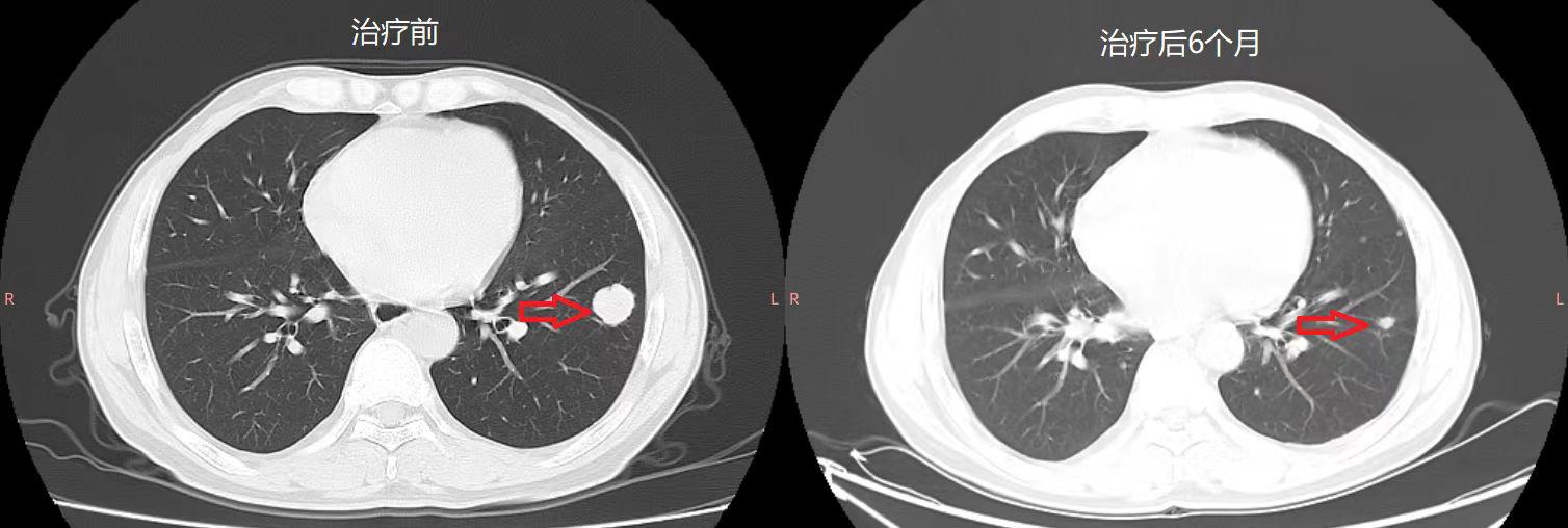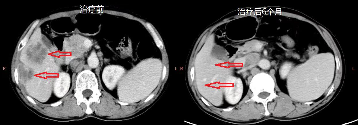 图2 肝部和肺部肿瘤缩小情况前后对比图