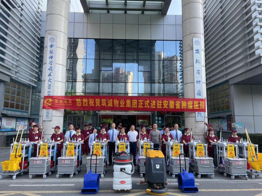 筑诚物业总经理王登山表示:此次筑诚物业进驻安徽省肿瘤医院,要把安徽省肿瘤医院作为公司重要的展示窗口,为高水平医院提供高品质物业服务,不辜负院领导对我们的期望,以更高的标准要求自己。