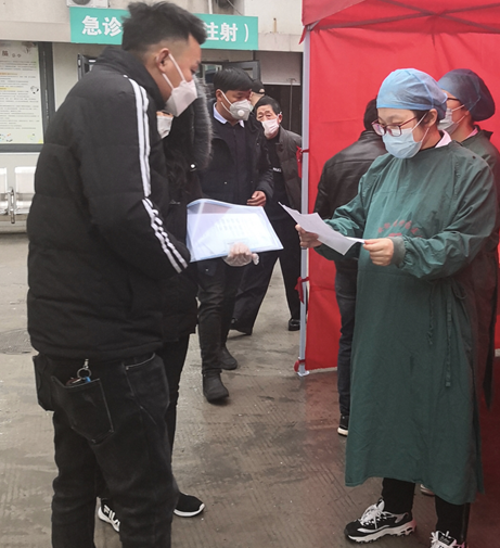 烟花三月,春回大地,在全民全力抗击新冠肺炎的特殊时期里,我们迎来了雷锋月。为了进一步弘扬雷锋精神,发扬“奉献、友爱、互助、进步”的志愿服务精神,为了更好地服务广大就诊患者,减轻门诊预检分诊工作人员的压力。3月9日上午,内二支部的八名党员在组织委员杨娟同志的带领下,利用自己的休息时间在门诊开展了半天的志愿服务活动。