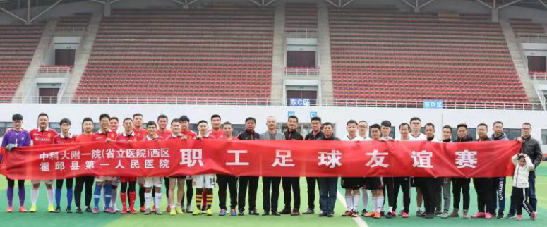 第一站,在霍邱县人民医院门诊广场开展义诊活动,看着已早早等候的候诊人群,党员们不敢懈怠立即开始义诊工作,现场围满了众多前来问病的乡亲们,专家们耐心与群众进行交流,详细解答他们提出的问题,并为他们制定了合理的治疗方案,让群众在家门口就可以享受到高水平、高质量的医疗服务。义诊结束后已接近中午,我们来到了活动的第二站—霍邱县人民医院住院部,我们分组进行了与基层医院进行交流帮扶环节,医疗组深入到县医院普外科、骨科病房进行查房和疑难病例讨论,并对他们的临床攻坚项目、科研工作进行了相应的指导帮扶;护理组先是在医院安排下以《造口并发症处理及VTE管理护理经验浅谈》为题做了一场热情专业的讲座,随后进行了护理查房现场指导。与此同时第三站活动已在县医院足球场展开—中科大附一院西区与霍邱县人民医院职工足球友谊赛,场上队员拼的热火朝天,生活就像足球场,理想就是足球网,带好自己的生活球,奋力拼搏去争抢,站好自己的正确岗,与同伴同心协力奔向网,凭借这样的信念,两队队员场上拼搏,场后携手共建。下午我们开始了第四站活动:参观霍邱县红色教育基地—霍邱县烈士陵园,今年伊始,习近平总书记就号召全党开展党史学习教育,激励全党不忘初心,牢记使命,在新时代不断加强党的建设。通过参观学习,我们被霍邱这片红色土地上的无数革命先烈为了人民不畏牺牲的精神所深深感动,知所从来,方明所去,通过追寻革命原点,我们倾听到了历史的回响。通过这次的红色教育洗礼,激励我们要继续继承和发扬先烈们的红色基因精神,行程万里,初心如一。
