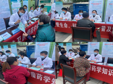 一大早,支部的党员们就抵达现场,拉横幅、搬桌椅,搭建用药咨询台,摆放合理用药宣传手册,为义诊活动做准备。前来咨询的群众络绎不绝,各位党员以饱满的热情,耐心地解答群众提出的各种用药问题,如肿瘤药物服用的注意事项、药物不良反应的预防及处理措施等知识。从专业角度出发,结合生活实际,细致地介绍了肿瘤药物与饮食之间的相互作用等方面知识,对患有高血糖、高血脂、高血压等慢性疾病的患者服药问题提出了建议和相应的解答,获得群众的热烈欢迎和一致认可。随后,党员们积极派发精心准备的《肠道肿瘤药物化疗宣传手册》《癌痛药物治疗的注意事项》等合理用药手册。