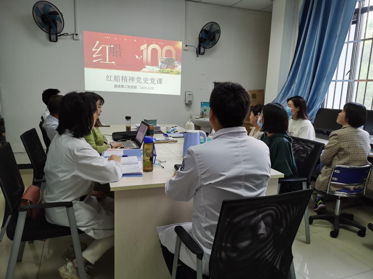 1921年8月初,中国共产党第一次全国代表大会在浙江嘉兴南湖的一条游船上胜利闭幕,庄严宣告中国共产党的诞生。这条游船因而获得了一个永载中国革命史册的名字——红船。为了更好的学习“红船精神”,4月29日下午,医技第二党支部组织全体党员开展了“伟大红船精神”的党史党课学习教育活动。
