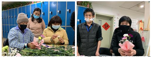 邀请家属和患者一起动手制作精美的花束,为洁白的病房添上一抹鲜艳的色彩,男家属们非常积极的投入进来“原本在家都没有送过花,今天在医院居然赶上这样的好机会,我也来表表心意……”