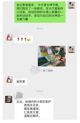 患者交流群内实时分享活动进程,吸引很多患者围观,虽然已经出院在家休养,但是看到这样的活动,心头暖暖的,一位夏姓患者即兴赋诗一首:患病本无奈,痛苦真难挨,仁医有大爱,温暖达胸怀。