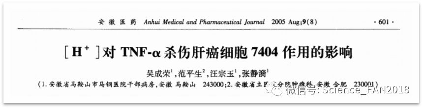 《[H+]对LAK细胞、rIL-2、IFN-α2b联合ADM抗恶性肿瘤》2001年12月投稿,2003年3月发表在《实用全科医学》。《[H+]对TNF-α杀伤肝癌细胞7404作用的影响》2005-05-16收稿,2005-08-09发表于《安徽医药》杂志。《经动脉向恶性实体肿瘤组织灌注碳酸氢钠提高化疗药物疗效的初步观察》投《中国临床药理学与治疗学》杂志,2000-05-04发表。