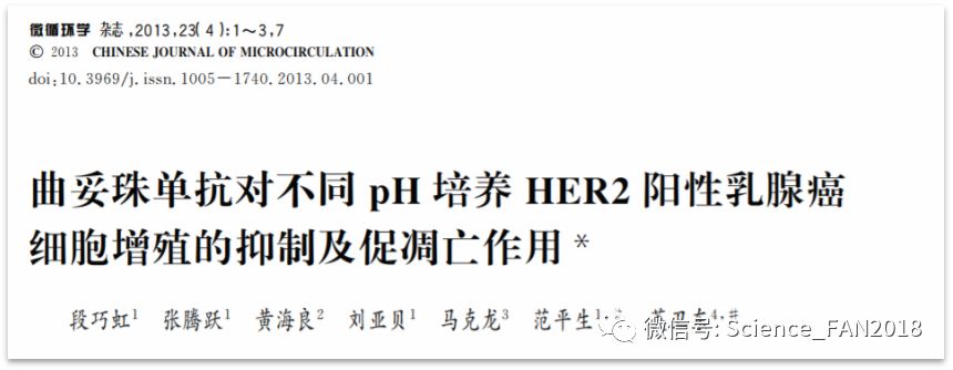 《曲妥珠单抗对不同pH培养HER2阳性乳腺癌细胞增殖的抑制及促凋亡作用》2013-06-19投稿,2013-08-22接受并发表《微循环学》杂志。