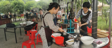 大锅灶需要自己动手加工食材,这可难倒了不少家长,不过也有技术过硬的“大厨”,大家分工协作,洗菜、摘菜、切菜、剥蒜、剁肉泥……忙的不亦乐乎,孩子们一边追逐玩耍、一边跑来跟妈妈说“辛苦啦!”,这精神的慰藉瞬间让大家干劲十足,一个接一个大菜出锅了,油焖老鸭、土鸡贴饼、白灼大虾、豆腐烧肉、红烧鲫鱼……这应该是大家吃过最可口的饭菜吧。