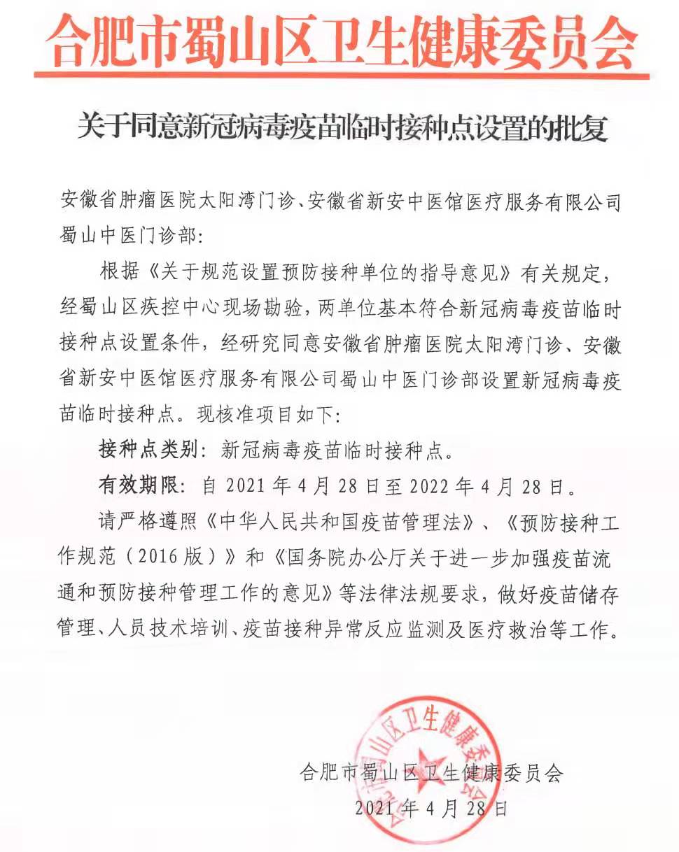 4月28日,我院取得新冠病毒疫苗临时接种点资质。院领导高度重视,始终以高度的责任感落实疫苗接种工作,优化太阳湾门诊布局流程,落实接种人员岗前培训,为民办实事,方便群众接种需求。短短十几天时间,在全院多部门的积极推进下,顺利完成各项接种前准备工作,通过现场验收,取得了临时接种点资质。