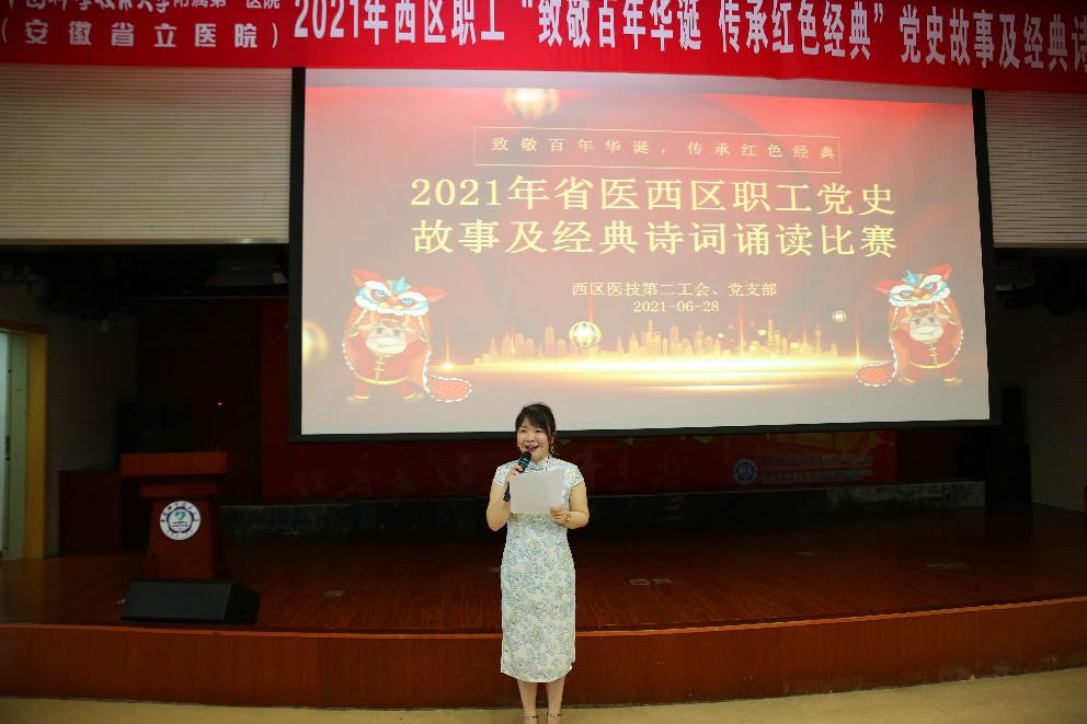 本次2021年省医西区职工党史故事及经典诗词诵读比赛由西区分工会主办,西区医技第二工会承办,由省医西区分党委张玉洁书记、省医西区分工会王凤霞主席、省医西区医技第二党支部李明书记和省医西区综合办团委李毅书记担任活动评委。比赛共有来自各个科室工会的12组选手参赛,他们中有医生,有护士,也有行管人员,表现的作品有诉说党史故事的,有朗诵经典诗词的,还有根据自身感悟写作的原创作品,配以感人的视频、配乐,让一个个党历史上的伟大人物和经典场景在我们眼前鲜活起来,让与会观众感受到了满满的正能量!