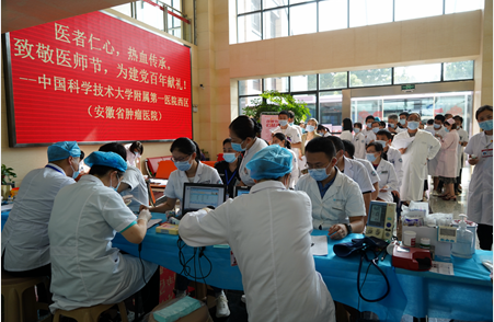 “百年华诞同筑梦,医者担当践初心”,铿锵有力的誓词回荡在我院1号楼门前广场。8月19日,在我国第四个“医师节”来临之际,医院特别举行庆祝“中国医师节”系列活动--义务献血和医生集体生日会。