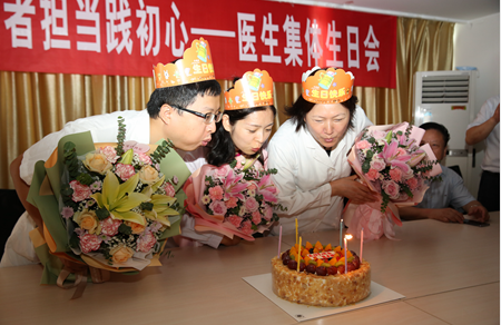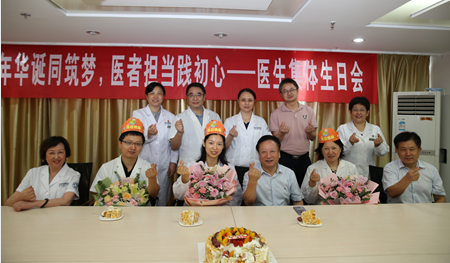8月19日,徐泉、林婷婷、孟祥晖等三位医生是今天的寿星,院领导和职能科室负责人特意为他们举办了集体生日会。院领导亲自为他们送上鲜花,在切蛋糕的时候,三位寿星感动得热泪盈眶,为医院的人文关怀点赞。