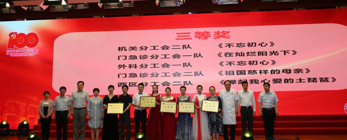 为庆祝中国共产党成立100周年,歌颂党的伟大征程,弘扬爱国主义精神和社会主义核心价值观,6月30日下午,根据中国科大附一院(安徽省立医院)院党委统一部署,由集团工会精心组织的“颂歌献给党——中国科大附一院(安徽省立医院)庆祝中国共产党成立100周年歌咏比赛”在南区学术报告厅成功举办。