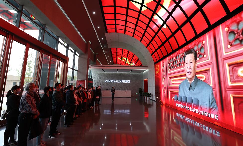 在讲解员的引导下,大家依次参观了“纪律立党·从严治党、廉润江淮·清风扬帆、以案为鉴·警钟长鸣、不忘初心·永葆清廉”四个展厅,通过展板、图片、视频、雕塑、互动查询、场景还原、沉浸式体验等形式全方位回顾了中国共产党的百年纪律建设史以及安徽省委落实全面从严治党、深入开展党风廉政建设和反腐败斗争成果。