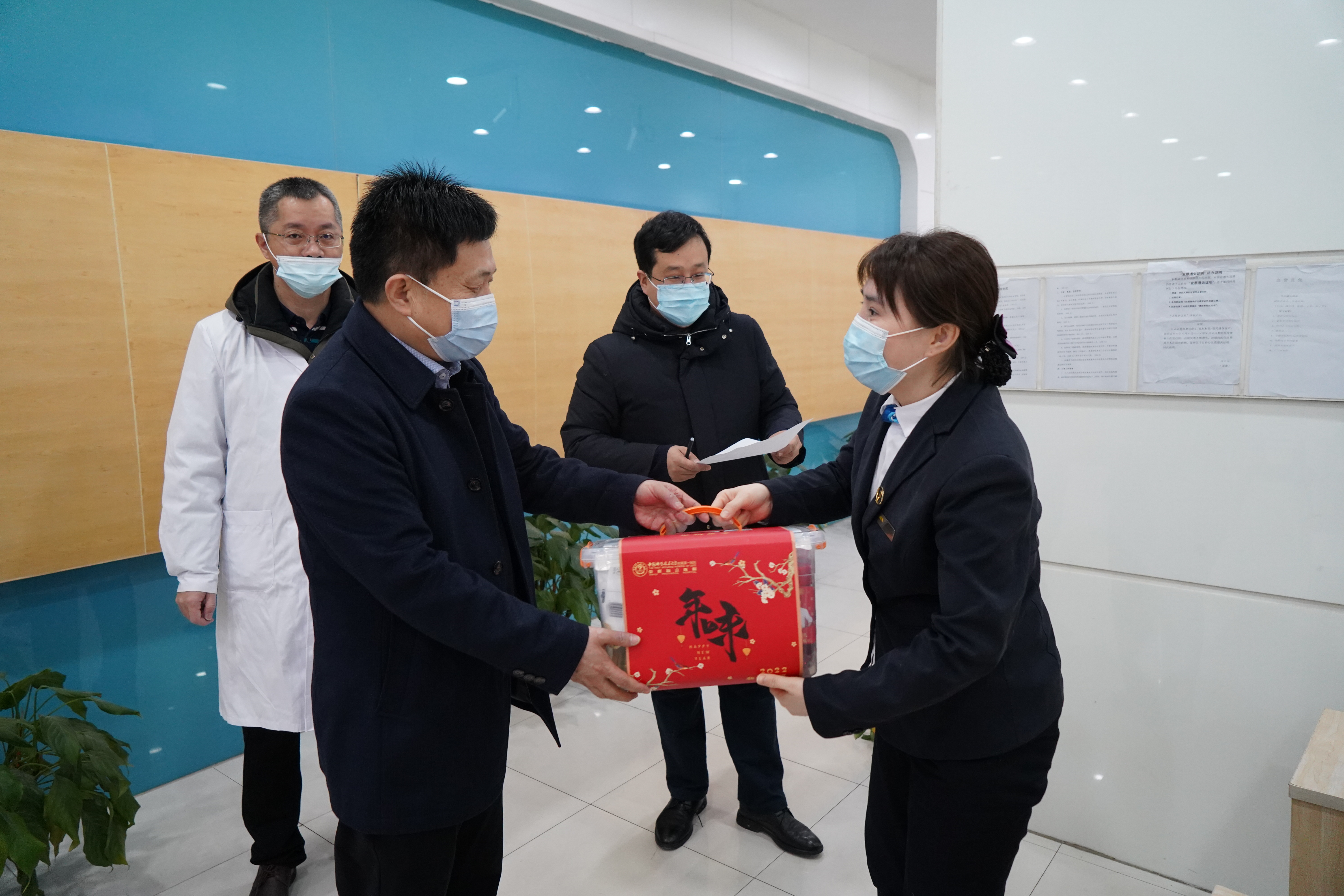 2月1日是农历新年第一天。当天上午9点半,陶良军副院长带领医工、财务、综合办、护理、科教、院感、防癌、医保、保卫、信息总务、医务、门诊等相关科室人员,分组到临床、医技、后勤保障等部门,慰问坚守在一线的全体医护人员。