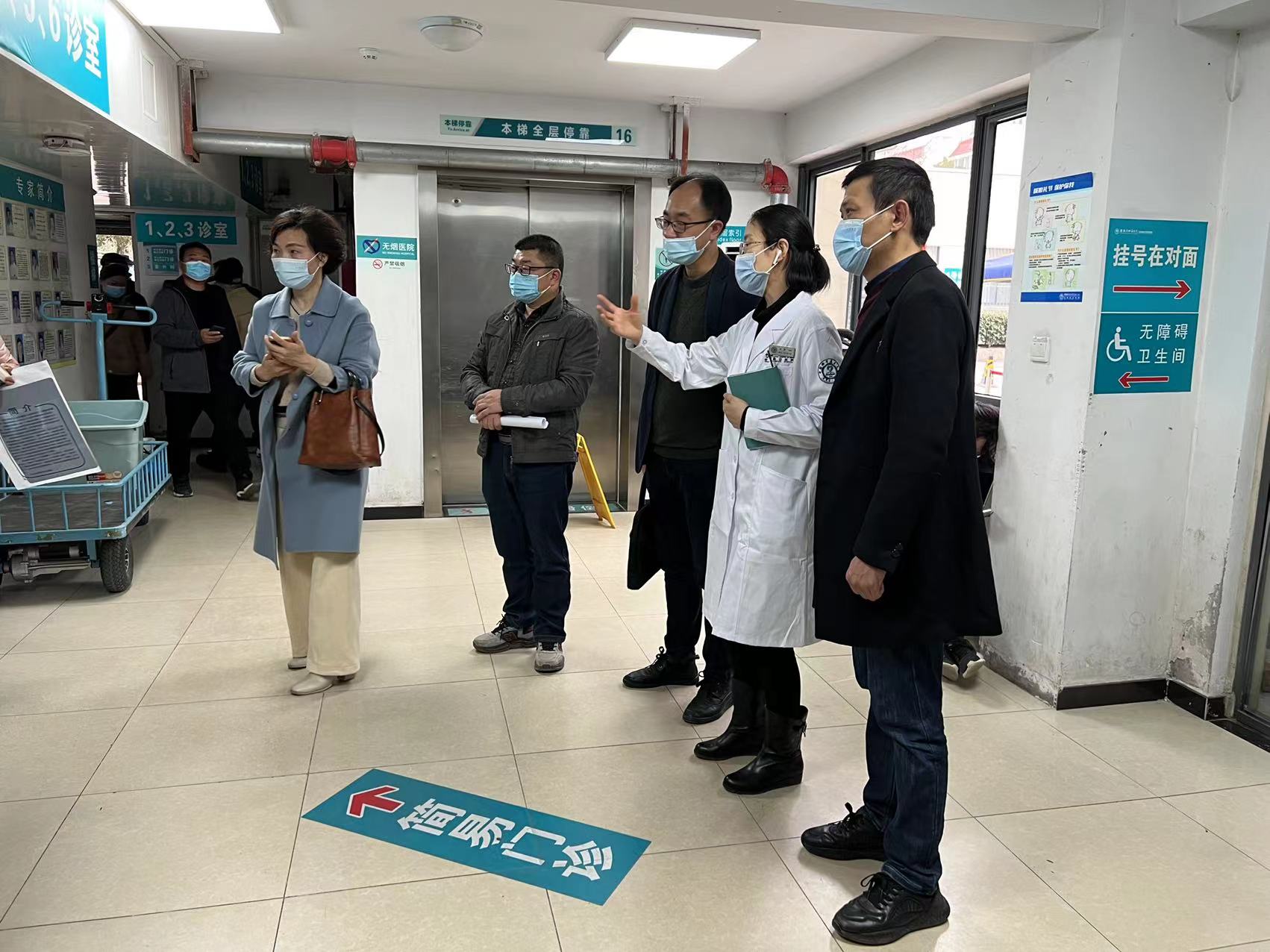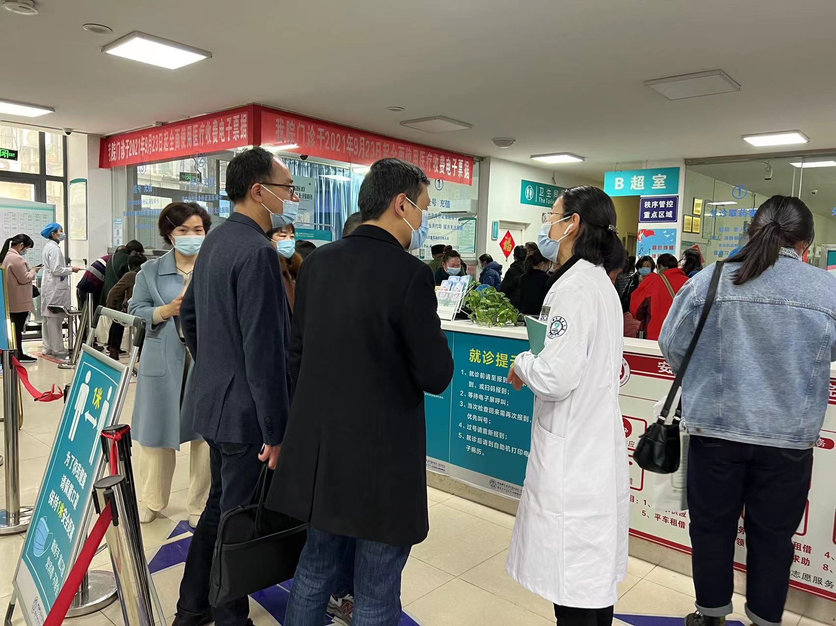 会后,来访人员朱珲主任一行在我院门诊部工作人员陪同下,对我院门诊和急诊的预检分诊,预约诊疗,门诊流程管理及就诊环境进行全方位实地考察和深入交流。