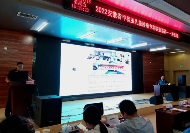 7月15日,安徽省甲状腺乳腺肿瘤专科联盟主办的“2022安徽省甲状腺乳腺肿瘤专科联盟巡讲——庐江站”,在联盟主委王圣应教授的带领下,顺利举行。本次巡讲紧紧围绕“学科建设与发展、新时代下甲状腺乳腺的诊疗与发展趋势”的主题做深入探讨,分享了最新的临床经验和研究进展。本次巡讲分为学科建设、学术论坛、病例讨论等三个重要环节。