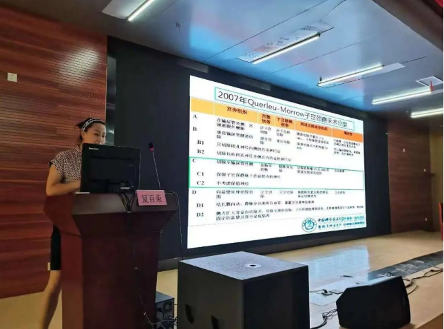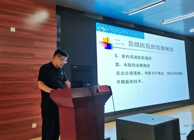 在学科建设环节,王圣应教授首先就学科建设浅谈《乘势发展 再创辉煌》,介绍了我院头颈乳腺外科以扎实先进的业务能力、大爱精诚的担当意识,快速发展成为全省甲乳肿瘤领域执牛耳者的历程。以此鼓舞区县级医院不忘初心、务实进取,努力为全县群众提供优质、可靠的甲乳专科医疗服务。陈宏存主任和徐玉生主任先后就市县级专科发展介绍了自己的经验。在学术论坛环节,夏百荣教授做了题为《从子宫动脉入路“输尿管隧道”解剖技巧》的PPT讲座;朱正志做了题为《肿瘤整形技术在乳腺外科手术中应用》的PPT讲座;方静做了题为《腔镜技术在甲状腺外科中应用》的PPT讲座;张菁做了题为《甲状腺和乳腺超声检查》的PPT讲座;刘松做了题为《甲状腺手术喉返神经的保护技术》的PPT讲座。在病例讨论环节,王艺微、刘建军两位医生先后带来疑难病例分享,庐江县人民医院胸外科主任陈红星、超声诊断科主任张劲元等与专家组一起进行讨论。