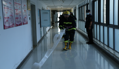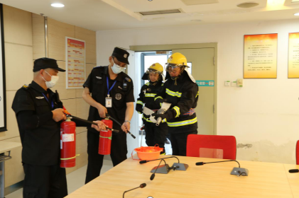 演练模拟在1号楼3楼会议室。当时会议室发生火灾险情,消防监控室听到报警确定方位,出警、灭火、疏散、救护,迅速以最快速度开始各项处置工作,灭火和救助同时间开展,灭火组的开始手持灭火器,利用灭火水枪控制火情,救助组开始疏散群众让群众转移,各个环节有条不紊进行中,最后火势得到控制被熄灭,群众被安全转移,此次演练圆满完成。