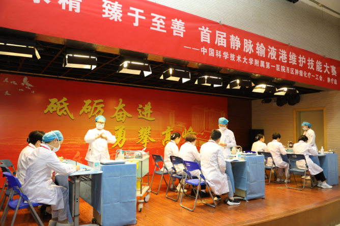 为进一步巩固和提升护理人员专业实践能力,促进临床护理技能同质化、标准化、精细化发展,10月23日下午,护理部联合肿瘤化疗一工会在1号楼学术报告厅举办了首届静脉输液港维护技能大赛。大赛邀请了西区工会主席王凤霞、工会副主席孙妍、护理部副主任黄正芹、集团化学学科护士长及静疗组组长徐军霞、放疗学科护士长朱小明及四位病区护士长担任评委。部分病区护士长、静疗组组员及正在我院临床实践的省级静疗专科护士、肿瘤专科护士40余人现场观摩。黄正芹副主任致开场辞并担任主持。