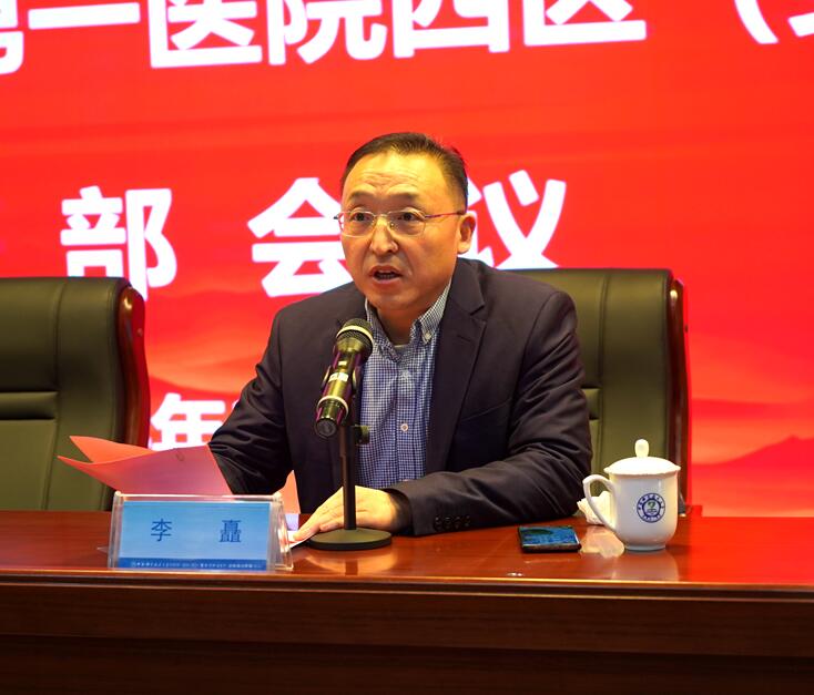 刘连新指出,医院将继续在大学党委和省卫生健康委党组的坚强领导下,一是要牢牢把握根本遵循,始终做到对党忠诚,政治坚定。要紧紧聚焦“思想引领”,坚持不懈加强党的创新理论武装,牢牢把握正确的办院方向,坚持医院公益性,持续提升患者就医体验,提升医院服务人文性,建设暖心的人文医院。二是要抢抓大好发展机遇,始终做到敢作善为,争创一流。西区上下要抢抓大好发展机遇,推动院区整体实力提档升级,进一步提升服务医院发展大局的能力水平,落实好体一化管理举措和同质化发展要求,勇于争创一流、坚持守正创新、打造特色亮点,推动西区工作向中心聚焦、为大局服务。三是要加强班子自身建设,始终做到团结坚强,奋发有为。西区党政班子要牢固树立“全局一盘棋,上下一条心,拧成一股劲”的思想,以院长作为分院区第一负责人,自觉维护班子团结,充分调动班子成员的积极性、主动性和创造性,真正做到发扬民主,集思广益,科学决策,投入更多精力聚焦医院的管理与发展。四是要推进全面从严治党,始终做到严谨求实,廉洁自律。要求西区党委严格按照分院区党委职责,履行好管党治党主体责任,纵深推进全面从严治党,着力营造风清气正的干事创业环境,持续加强党风廉政建设和纪律作风建设,进一步打造忠诚干净、廉洁自律的高素质干部队伍,为西区的高质量发展提供坚强的政治保障。
