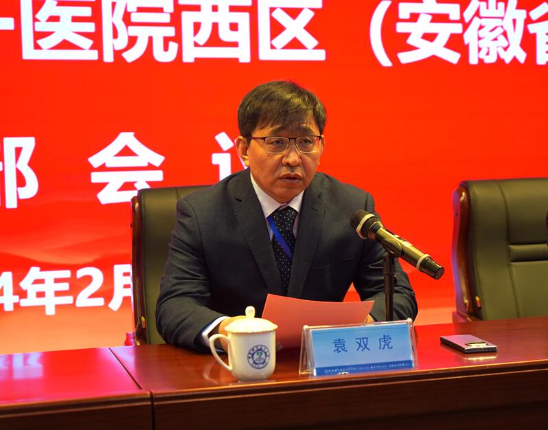 袁双虎做表态发言,衷心感谢组织的信任和医院广大干部职工的支持,表示会在大学党委及总院党委领导下,切实履行岗位职责,与西区全体同志共战一线、共创佳绩,全面提升医疗、教学、科研和综合治理水平,以实际行动凝聚起西区干事创业的精气神,以良好的业绩回报组织的重托和期望。