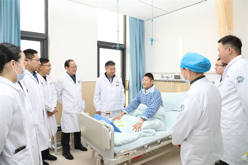术后,医护团队在患者甲亢围术期护理、气管切开围术期护理等方面协助患者跨过一沟再越一壑。术后第3天,对面查房的王圣应及医护团队,从“鬼门关”走了一圈的邓先生清晰地说出了术后的第一句话:“谢谢你们!”