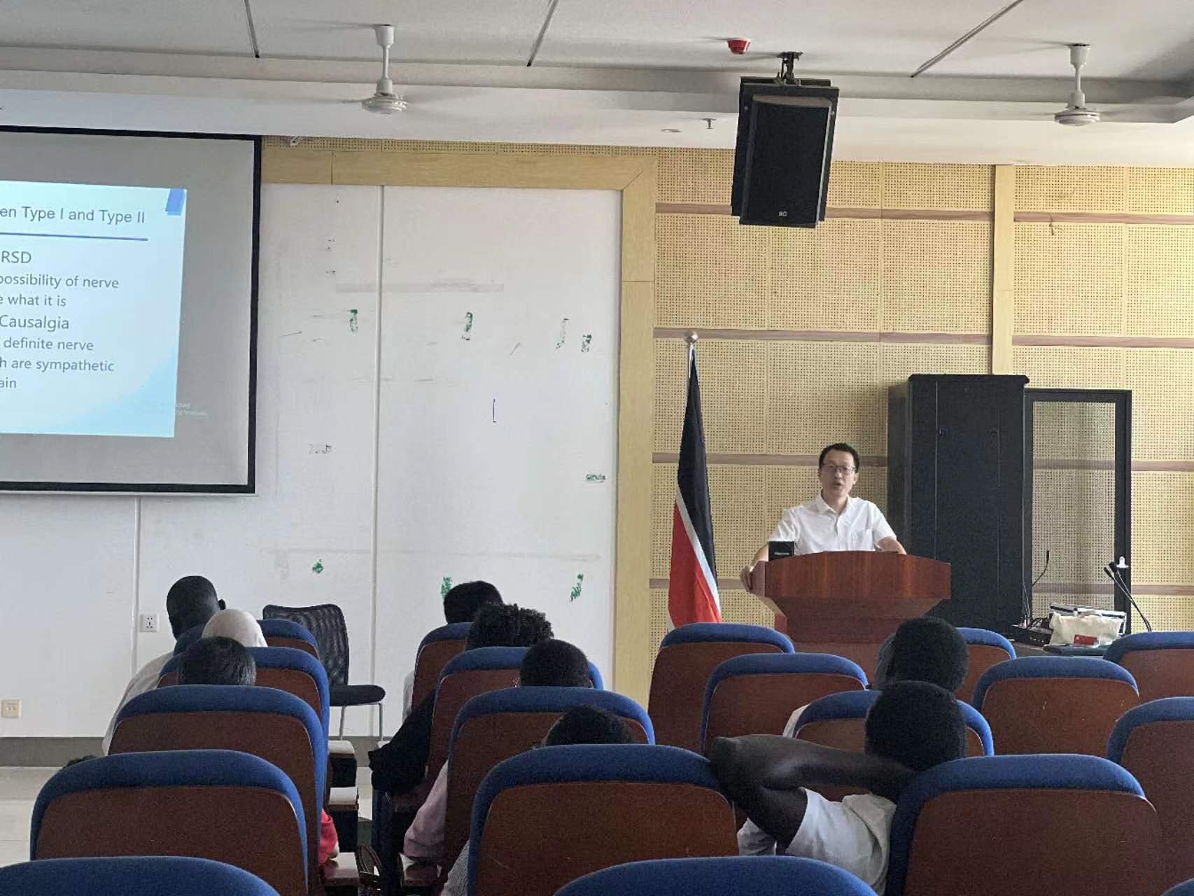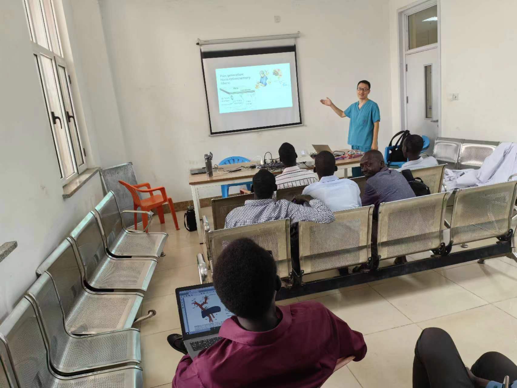 授人以鱼不如授人以渔,除了开展日常的临床麻醉工作外,汪云散麻醉医师也积极开展各类临床麻醉及疼痛诊疗相关知识的讲座,努力提高当地麻醉医师的技术水平,为当地居民留下一支“带不走的中国医疗队”。 (麻醉科 汪云散 文/图 肖剑 夏韫华/审核)