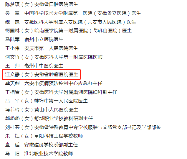获奖者简介:江文静,安徽省肿瘤医院妇瘤科主治医师,长期从事妇科肿瘤疾病的防控与临床工作,擅长宫颈疾病的筛查、治疗与手术。