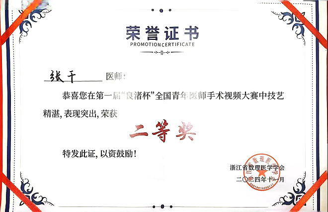 近日,我院胸部肿瘤外科副主任医师张干在第一届“良渚杯”全国青年医师手术视频大赛中,凭借微创肺癌及食管癌手术视频,分别荣获二等奖和三等奖。同时,在安徽省第五届“胸外科最强音”手术技能大赛肺叶组中荣获三等奖。在张荣新、田界勇主任医师的指导下,张干医师分别展示了一例复杂的微创肺癌及食管癌的手术视频,分享了自己在微创肺癌及食管癌手术中的创新思路和独特技巧。