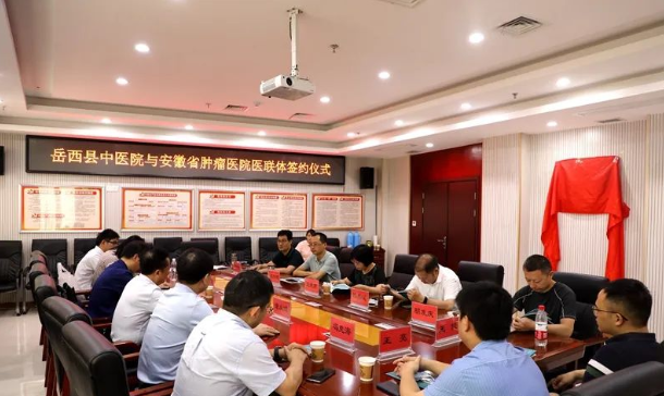 6月25日,我院与岳西县中医院合作签约揭牌仪式在岳西县中医院举行。钱立庭院长率我院综合外科主任涂从银、妇瘤科主任夏百荣、防癌科主任魏东华等出席。县卫健委、县中医院主要负责同志、科室负责人参加活动。