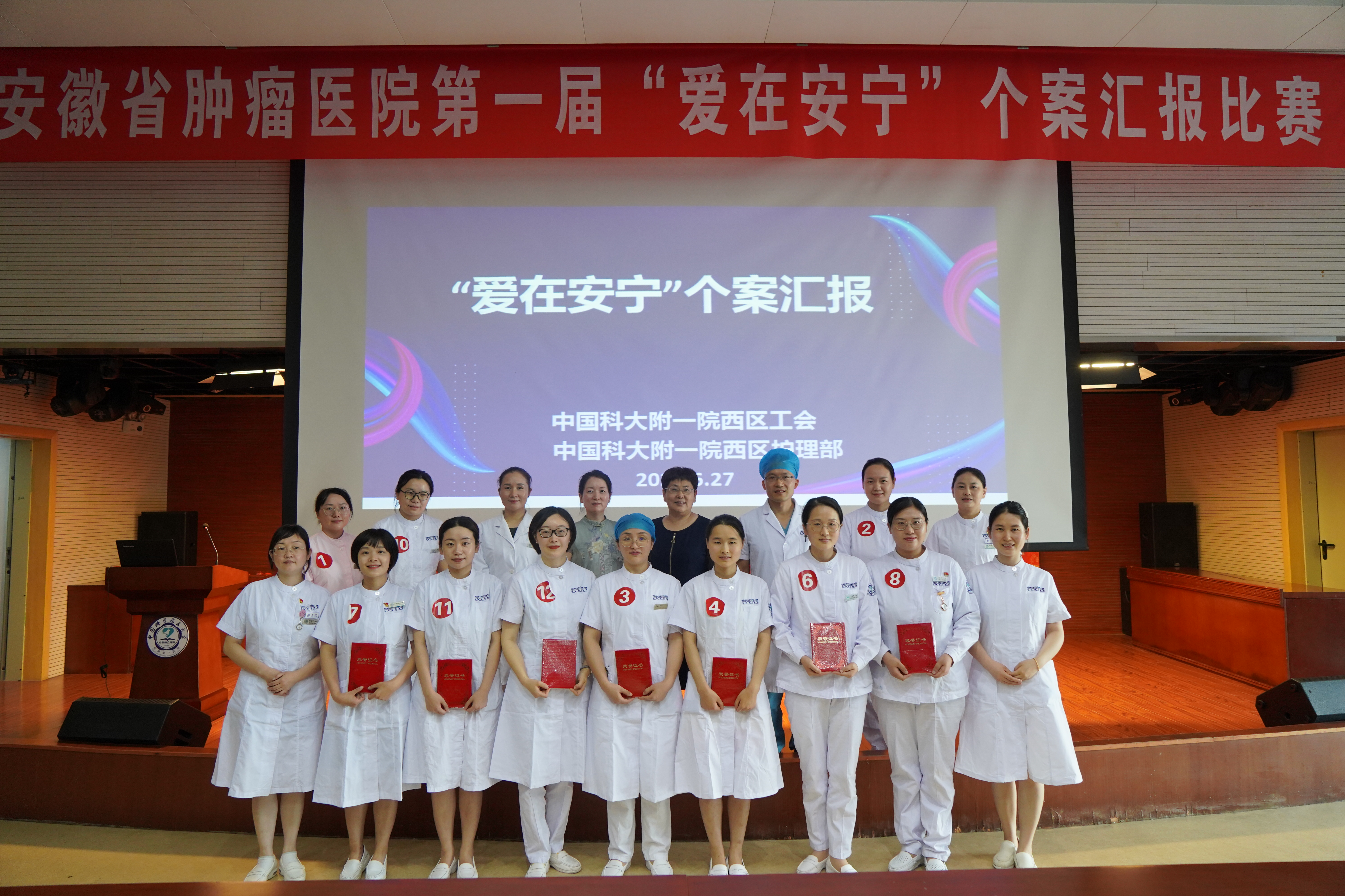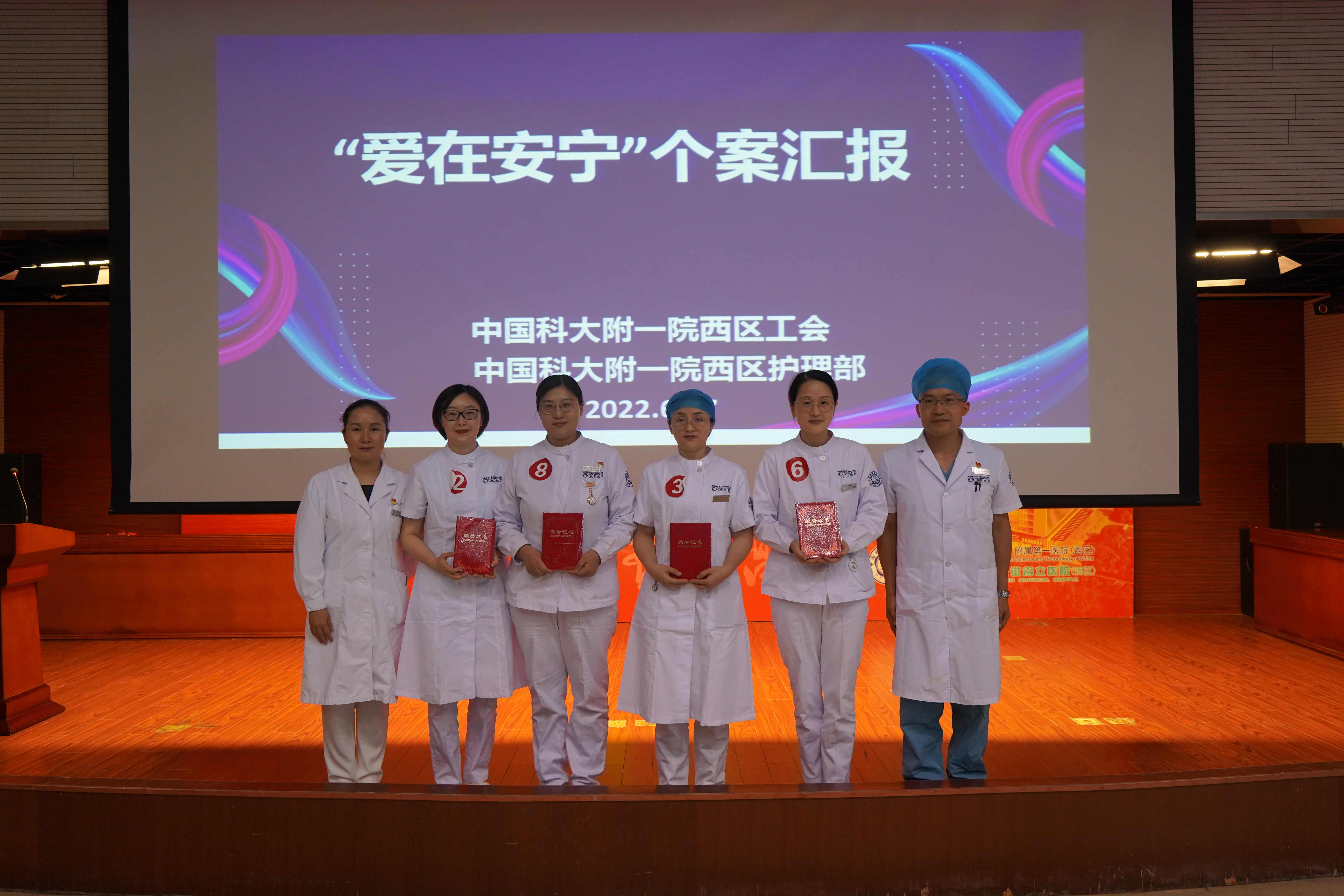 为贯彻落实《全国护理事业发展规划(2021-2025年)》中“加快安宁疗护发展”要求,检验我院安宁疗护实践水平,展示安宁疗护实施成果,6月27日下午,院工会联合护理部在多功能报告厅举办“爱在安宁”个案汇报比赛。西区工会王凤霞主席、呼吸肿瘤科李家军主任、麻醉科孔令锁主任、南区化疗科李彩云护士长及西区护理部黄正芹副主任担任评委,部分病区护士长、安宁疗护小组成员等40余人现场观摩。