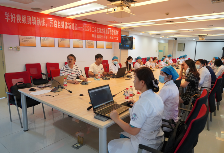 随着移动互联网的发展和移动智能终端的普及,短视频作为一种新型网络视听产品迅速崛起,在媒体信息传播、文化传承、知识分享中发挥了重要作用。为提升职工视频拍摄制作应用水平,助力各科室宣传特色,打造医院文化品牌,提升职工人文素养,院工会、机关一工会、外科二工会于8月4特举办《学好视频剪辑制作 开启自媒体新时代》专题培训。机关一工会主席肖剑,外科二工会主席郑文琳出席会议,此次培训采取线上线下相结合的形式,各科室工会成员积极报名参加。