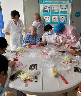 集体活动在大合照中结束,大家都与自己的作品合影。所有的作品也都送给大家留作纪念。多年以后我们想到这天下午在放疗二病区参加的中秋活动,我们在艰苦的环境里创造出温暖,我们在病痛的状态下仍然快乐坚韧地活着。这就是我们这次活动所追求的意义。(放疗二病区 段乃娟 钱纬华 文/图)