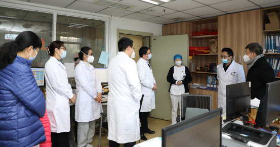 元月28日是农历新年第一个工作日。上午9点,钱立庭院长、虞德才书记、何新阳副院长带领院综合办、医务、护理、医学工程科等相关科室负责人分组到临床、医技、职能科室等部门给医护员工拜年。