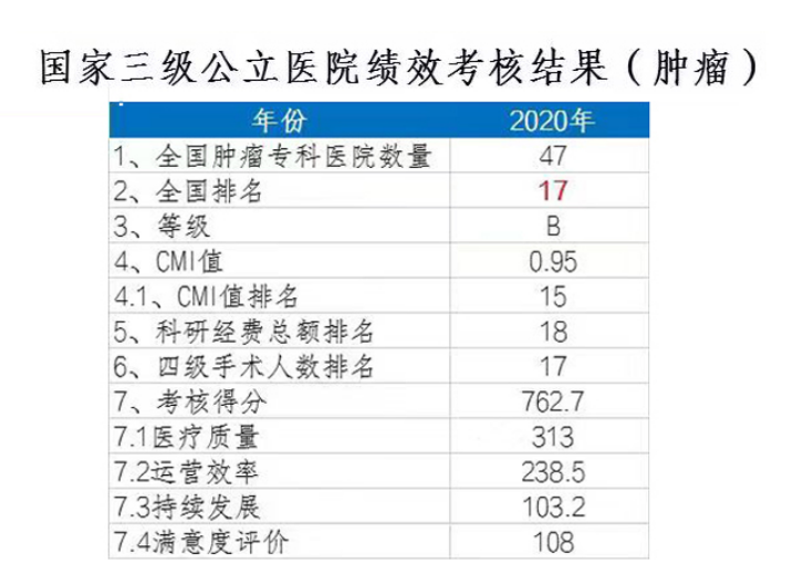7月7日,国家卫生健康委员会公布2020年度三级公立医院绩效考核国家监测指标考核结果,中国科学技术大学附属第一医院西区(安徽省肿瘤医院)在全国三级公立医院(肿瘤)中名列第17位,成绩亮眼!