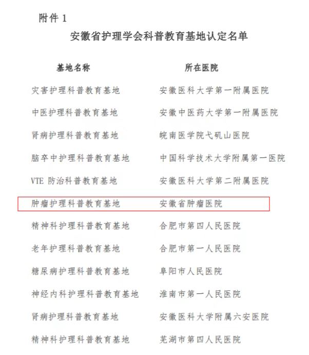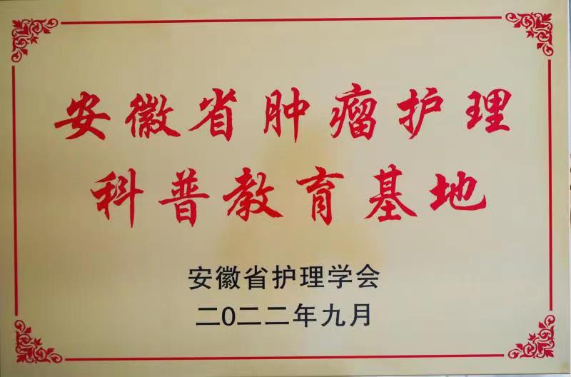 2022年4月,我院护理部接到了安徽省护理学会关于护理科普教育基地申报的通知,立即组织开展相关工作。在经历了漫长的申报、考察和评选后,我院从39家申报单位中脱颖而出,获批“安徽省肿瘤护理科普教育基地”。